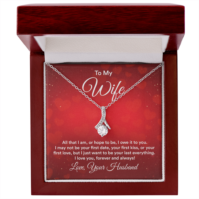 Imagine her reaction when she opens this stunning gift! The Alluring Beauty necklace features a petite ribbon shaped pendant that is sure to dazzle your special someone. Whether it's a birthday or anniversary, make sure to get her a gift she will love for years to come.